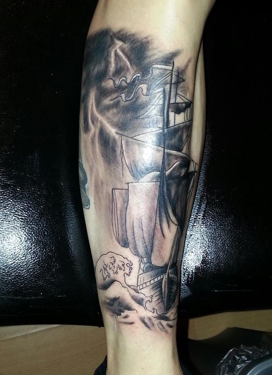 Auf der rechten Wade hab ich noch einen Leuchtturm mit Banderole, linke Wade eine Sanduhr mit Widmung für meinen besten Freund und auf dem linken Oberarm strahlt ein Erinnerungsstück aus der wilden Tresorzeit Mitte der 90er
