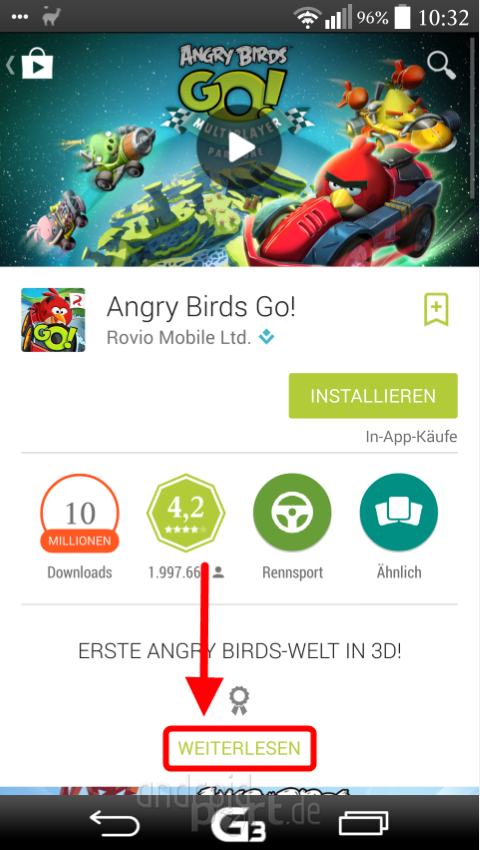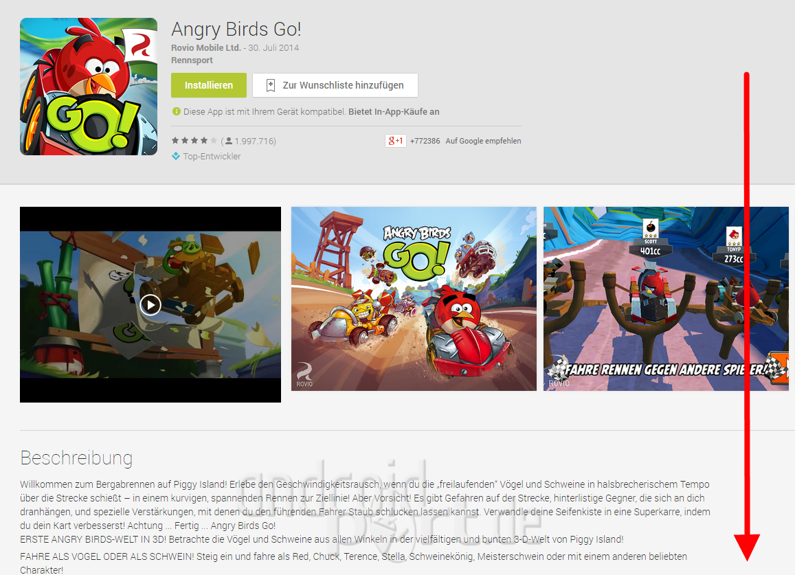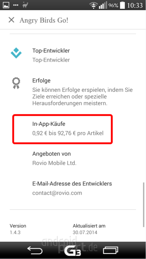 Immerhin schon eine Verbesserung aber mir geht das immer noch nicht weit genug. Hier muss das Google noch weiter ausbauen. Zum Einen sollten die Preise viel mehr hervorgehoben werden und vor allem sollte genau angezeigt werden, was alles und wie viel kostet. Der App-Store von Apple macht es hier vor, wie man es richtig darstellt.