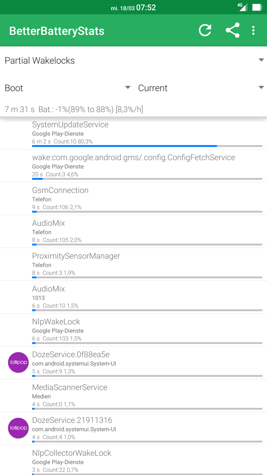 genau und wenn du in BBS unter partial Wakelocks schaust steht da was von update services wa?