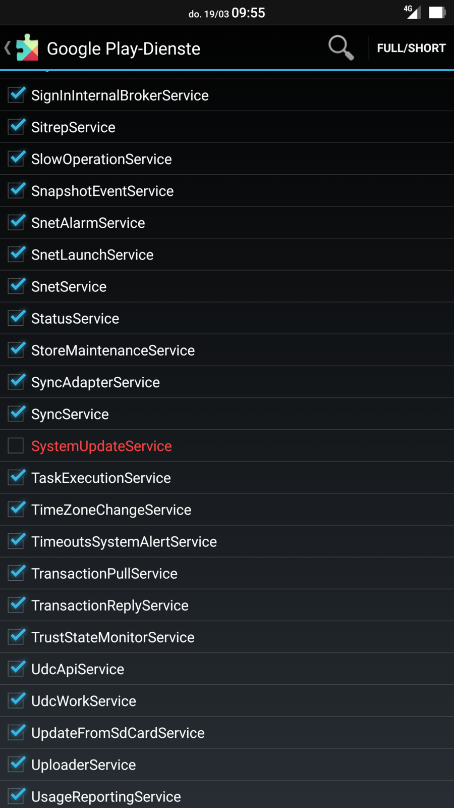 Hmmm, ich habe zwar Disable Service prophylaktisch auch drauf (man kennt ja seine Pappenheimer), aber bei mir ist "System Update Service" aktiv/angehakt...lediglich in AppOps "keep awake" für die Google Play Services und Google Dienste Framework abgeschaltet.