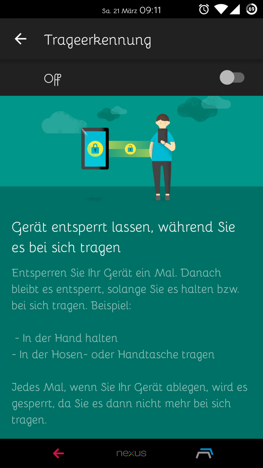 ZitatGrab the latest version of Google Play Services, and try out the new "On-Body Detection" feature!