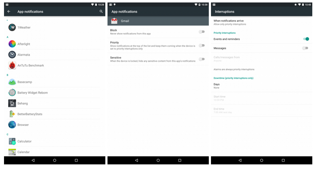 Über die Lautstärketasten kann man dann nun außerdem in einen Modus wechseln, in dem nur priorisierte Benachrichtigungen angezeigt werden – dauerhaft oder nur für einen bestimmten Zeitraum. In welchem Modus einzelne Apps angezeigt werden sollen, kann man in einem neuen Menü festlegen.