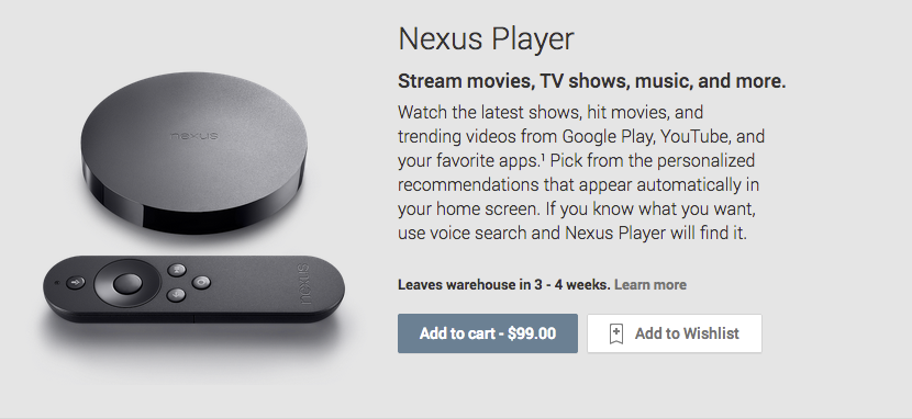 Google hat bislang weder einen Preis für den Nexus Player, noch den separat erhältlichen Game-Controller genannt. Kurz gelistet wurde es im Store mit 99,00$.
