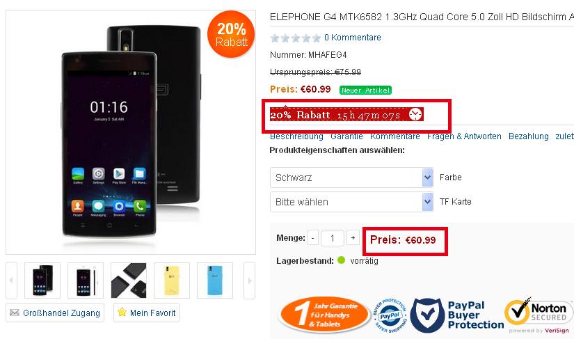 ELEPHONE G4 für vorübergehend nur 60,99€ - Einmalige Chance