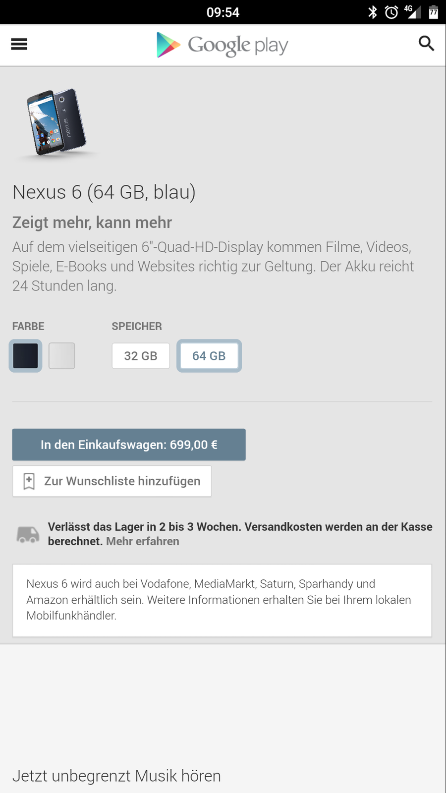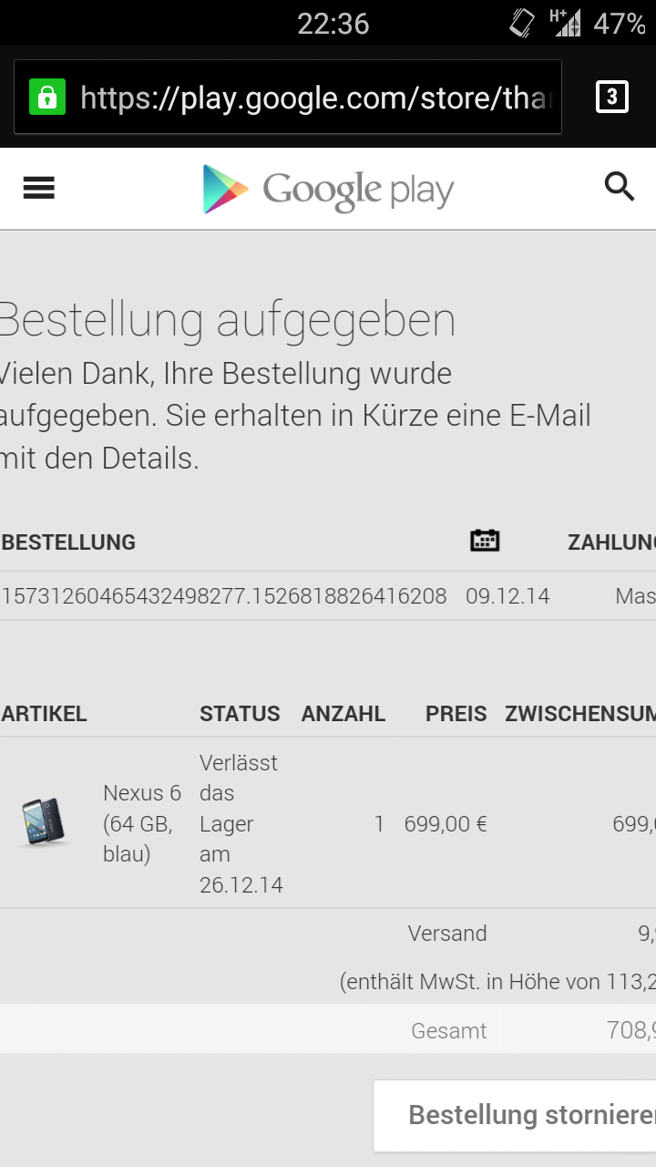 Edit : Gerade mit MM Aachen telefoniert. Normalerweise bedeutet dieser Status das die Ware in den nächsten Tagen kommt aber das Nexus 6 wird nicht vor dem 12.12.14 erwartet [emoji17]