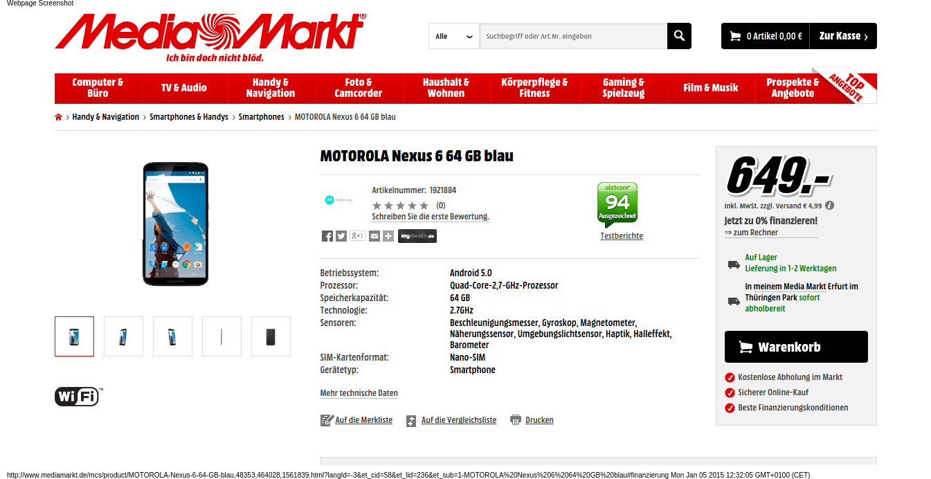 Nexus 6 64GB im google store jetzt nur 455 Euro
