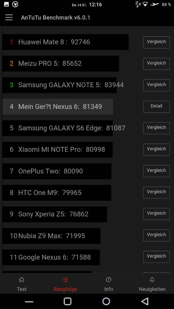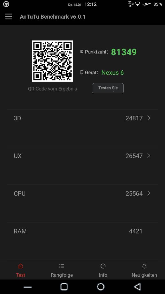 So kann ich meine tests vergleichen. Unter einander ist kein Vergleich möglich, da es so viele unterschiedliche verbaute cpus und Speicher gibt.Lasse gerade mal einen Test auf der aktuellen Velocity laufen um zu schauen ob die clang andere Werte hat. Wobei das für mich unwichtig ist. Das rom muss sich gut anfühlen, das ist wichtig.