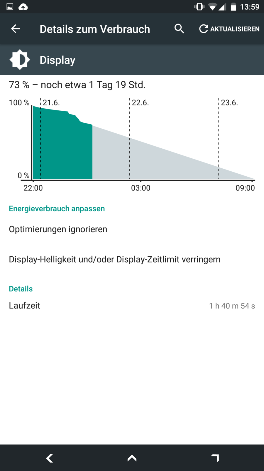 Nur das bei Akku Verbrauch Mobilfunk Stanbay bei 32 % liegt