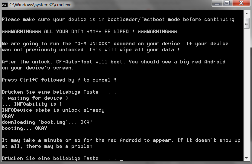 Eins vorweg ... es hat alles ohne Probleme geklappt. Naja außer das mein PC ein ****************** ist! - Ohne ende Treiber Probleme gehabt deshalb dat meiste "per Hand" gemacht. d.h. wiederum: per Tasten-Kombi ins fastboot, Neustarten etc :wtf: Ich werde in den Anleitungen näher drauf eingehen... ![]()