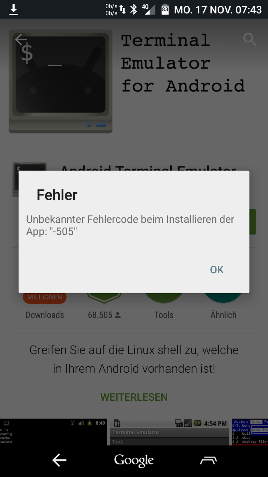Egal welchen ich aus dem Store installiere.Bekomme ich eine Fehlermeldung 505 .