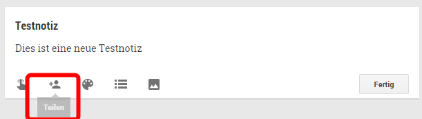 Beispiel beim Teilen über die keep.google.com Webseite: