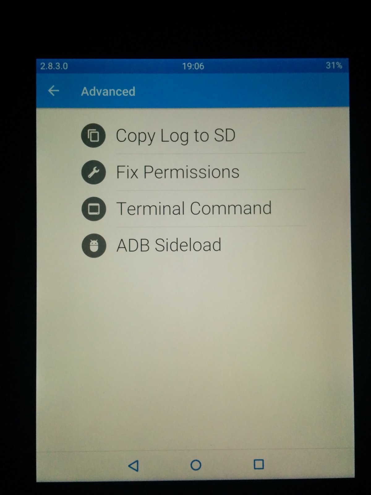 -Other minor fixes and improvementsNote: Starting with TWRP 2.8.2.0 and higher, adb sideload uses a new sideload method originally implemented in AOSP recovery. You will need the latest adb binaries to use sideload in these newer versions of TWRP. The version required is 1.0.32. You can find the version by running "adb version" on your computer. The new sideload feature no longer stores the zip on your device. Instead, a fuse file system is created in RAM and the zip is streamed from your computer. This puts less wear and tear on storage and ensures that large zips will not fill up all of your RAM. The sideload may spit an error on your PC side, but the zip should install just fine on your device.