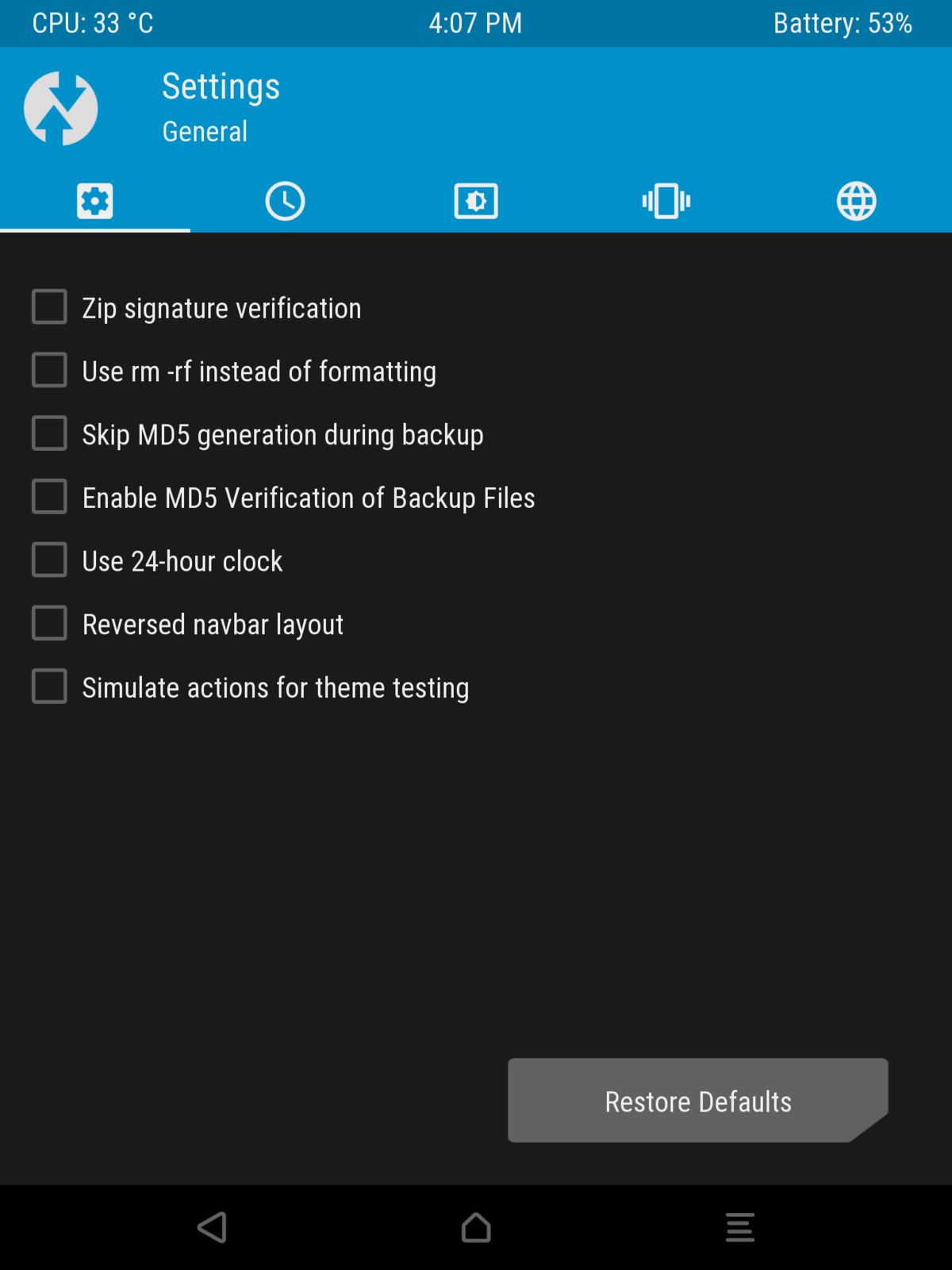 -A huge laundry list of other minor fixes and tweaksWARNING: This is our first release in a long time. We have a lot of new and somewhat aggressive changes in this new release. The changes to the graphics back-end may cause some devices to not boot up properly or have other display-related issues. If you are not in a position to reflash an older build of TWRP, then wait until you are or at least wait until others have tried the new version for your specific device. You don’t want to end up with a non-working recovery and have to wait several hours or days to get to a computer to be able to fix it.