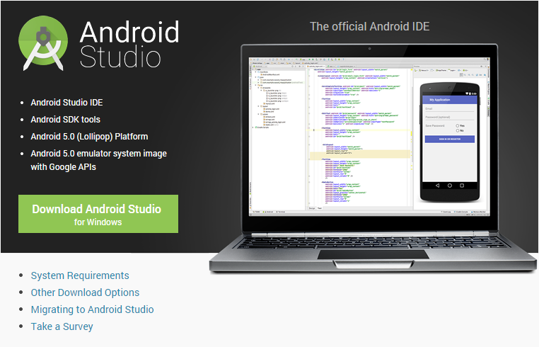 - 400 MB hard disk space + at least 1 G for Android SDK, emulator system images, and caches