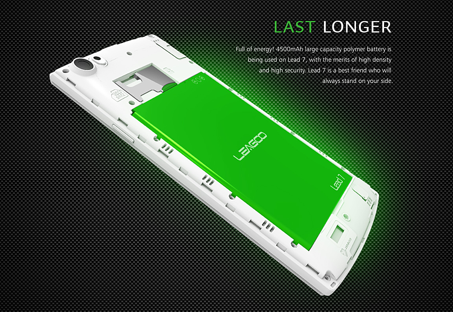 Das Leagoo Lead 7 verfügt über einen 4500 mAh Polymer großen Akku-Kapazität und mit Verdienste einer hohen Bestimmung und hohe Sicherheit. Lead 7 ist somit der Beste Freund an deiner Seite.
