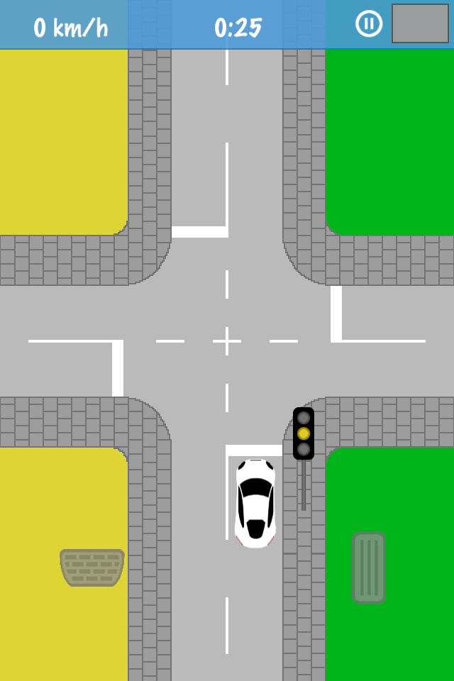 Achte auf Ampeln und Schilder. Für jeden Fahrfehler gibt es eine Zeitstrafe.