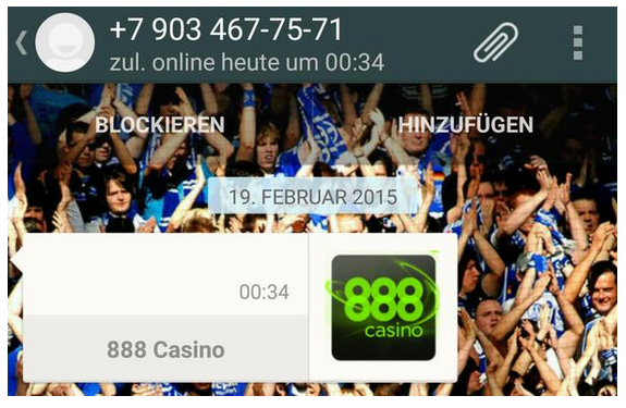 Seit dieser Woche häufen sich die Meldungen zu Spam-Nachrichten beim Messenger WhatsApp. In Deutschland gibt es zahlreiche Nutzer, die von einer Nachricht von “888 Casino” berichten. Hier handelt es sich anscheinend um Spam aus Kasachstan. Die Nummer der Absender beginnt anscheinend immer mit einer 7 und es sieht so aus, als ob ständig neue dazu kommen.