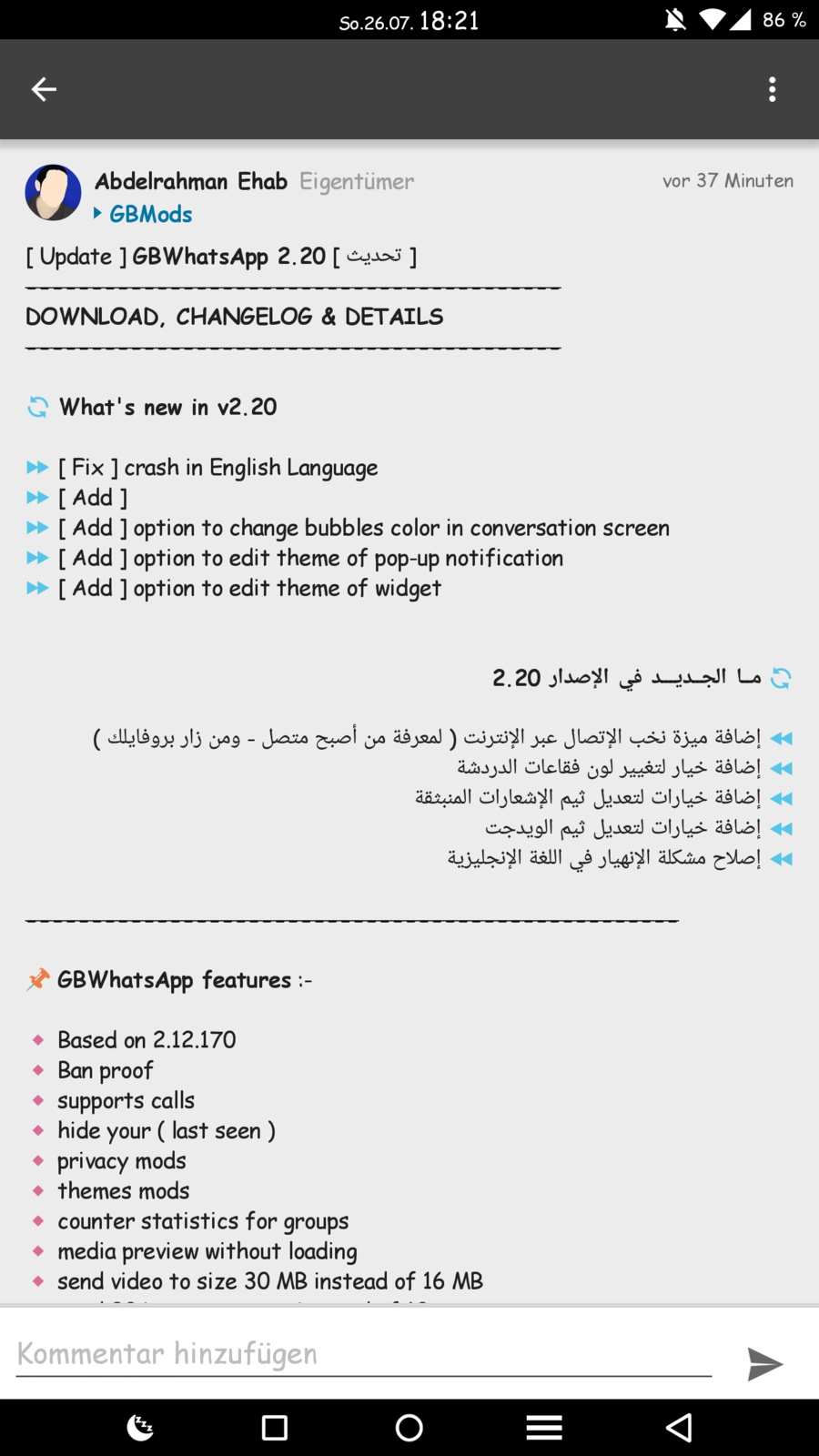 GBWhatsApp update auf 2.10