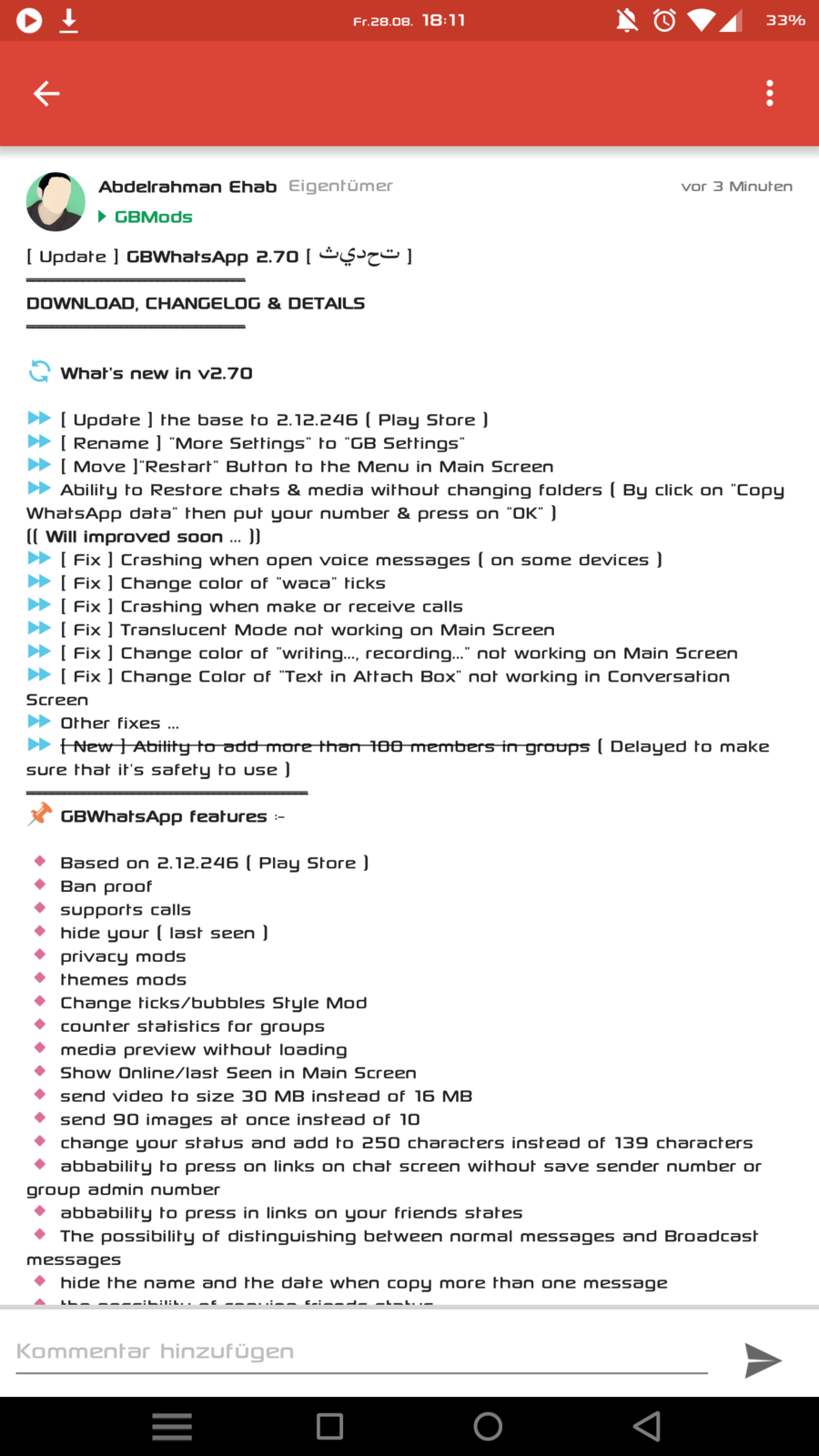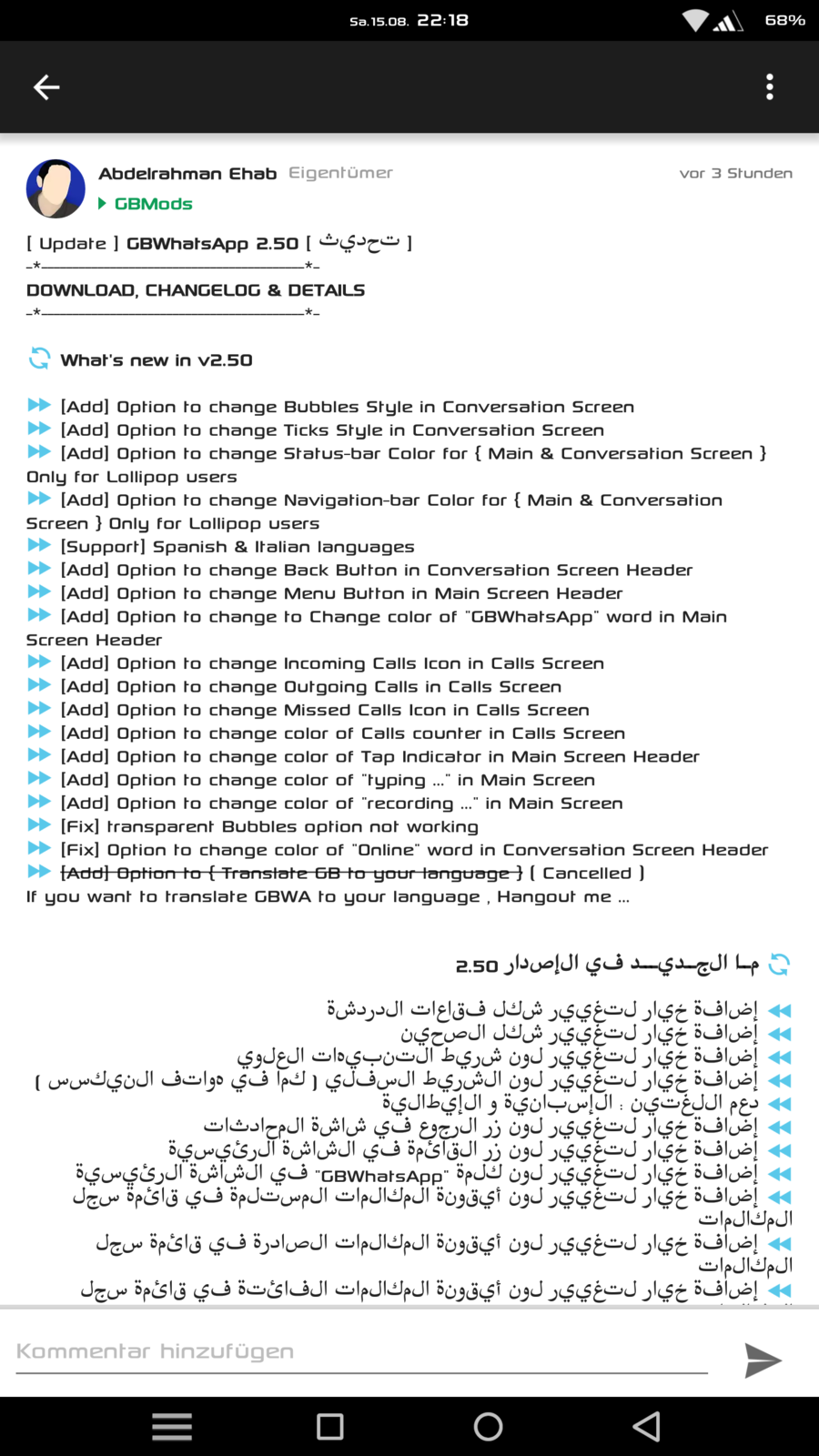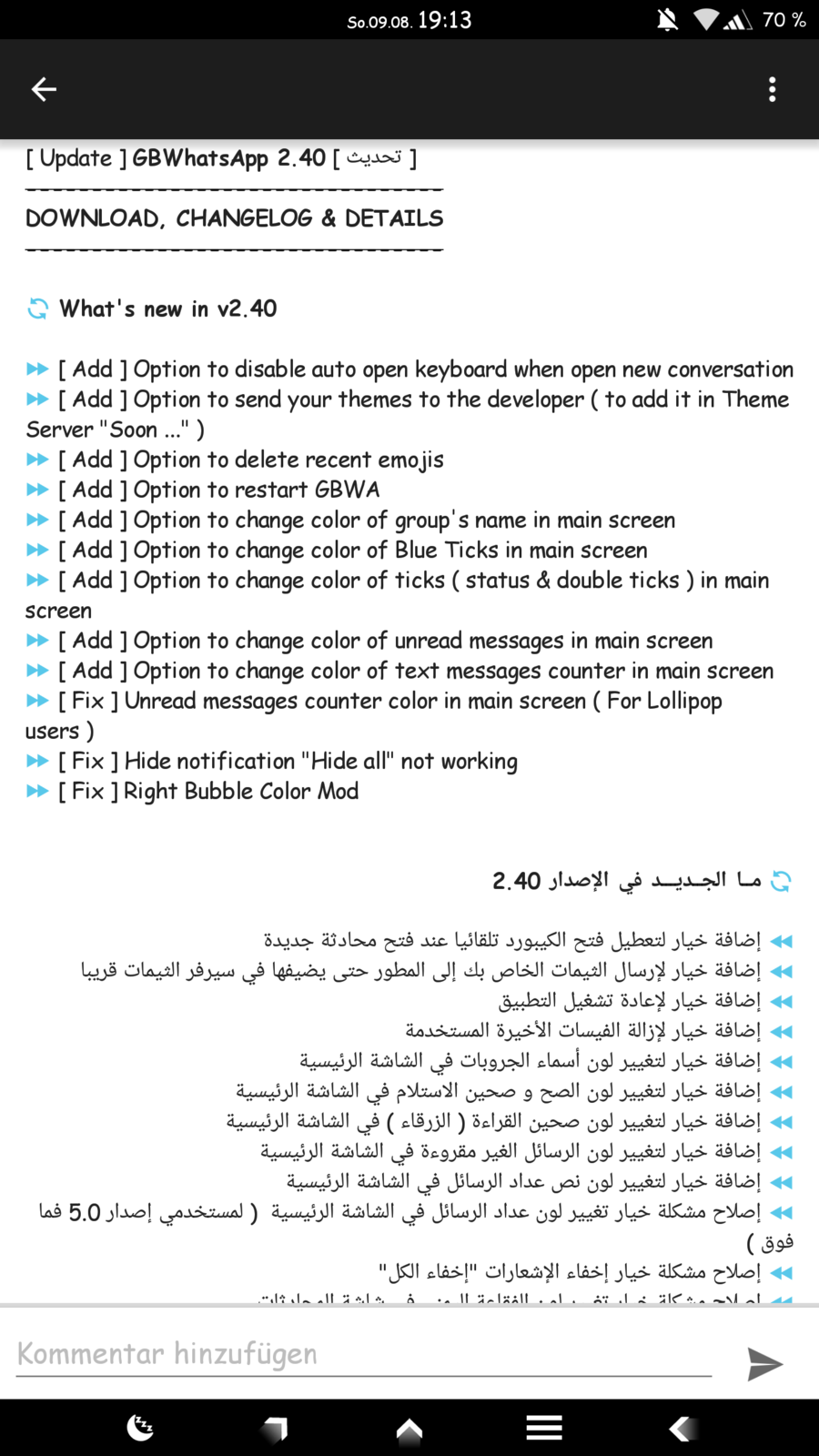 Und wieder ein Update von GBWhatsApp auf die Version 2.40