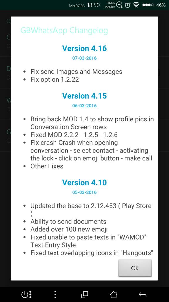 Bei der einzigen Alternative zu GBWhatsApp ist es komischerweise auch schon seit 7 Tagen ganz schön ruhig geworden. Normalerweise kommt da auch alle paar Tage eine Vorschau auf ein neues Feature, aber irgendwie ist es da auch verdächtig still im Moment.