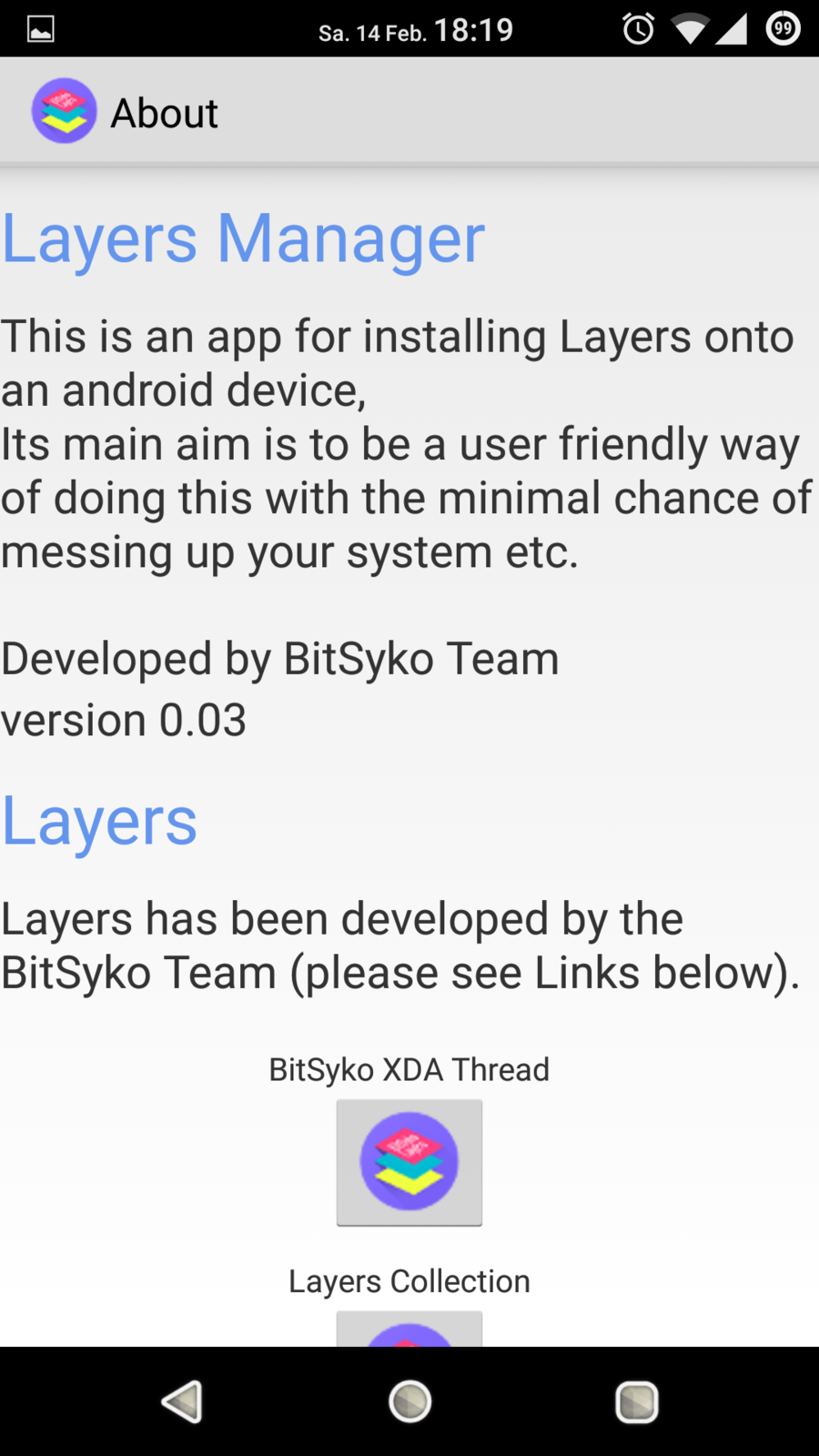 Bissl OP pflege (LAYERS GUIDE - How To Make a Overlay APK by Brian Gill, Layers Overlay System - How To by Tom Lichti, LAYERS COLOR PALETTE - Google Material Design Guidelines) & der "xda - [size=14]Official MEGA Layers Overlays Collection" Thread hat nun 43 Layers!