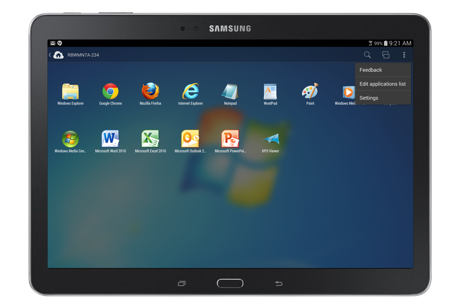 Zum Öffnen oder Wechseln zwischen Anwendungen ist nur einmal Antippen nötig. Fügen Sie Ihr bevorzugtes Desktop-Programm zum Home-Bildschirm Ihres Android-Geräts hinzu; dank der vollständigen Desktop-Tastatur können Sie sämtliche Funktionen nutzen. -