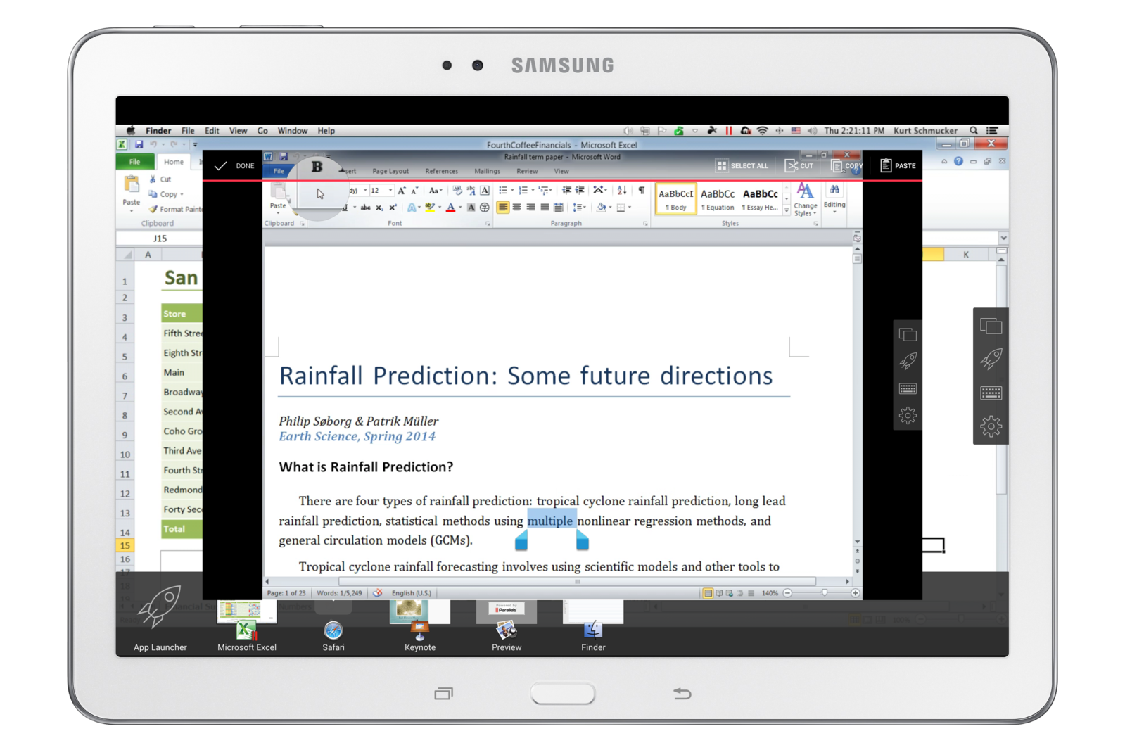 Schonen Sie Ihre Augen, und sehen Sie sich Apps im Vollbildmodus auf Ihrem Gerät an. Und außerdem haben Sie die beruhigende Gewissheit, dass Parallels Access Sie jederzeit und überall zuverlässig mit Ihrem Desktop verbindet – sogar in 3G-Netzwerken.[size=14]Alle Desktop-Programme sind nur ein Antippen entfernt.[/SIZE]