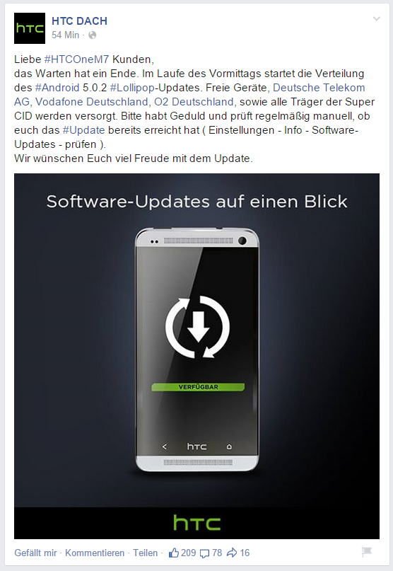 Quelle: HTC Dach Facebook