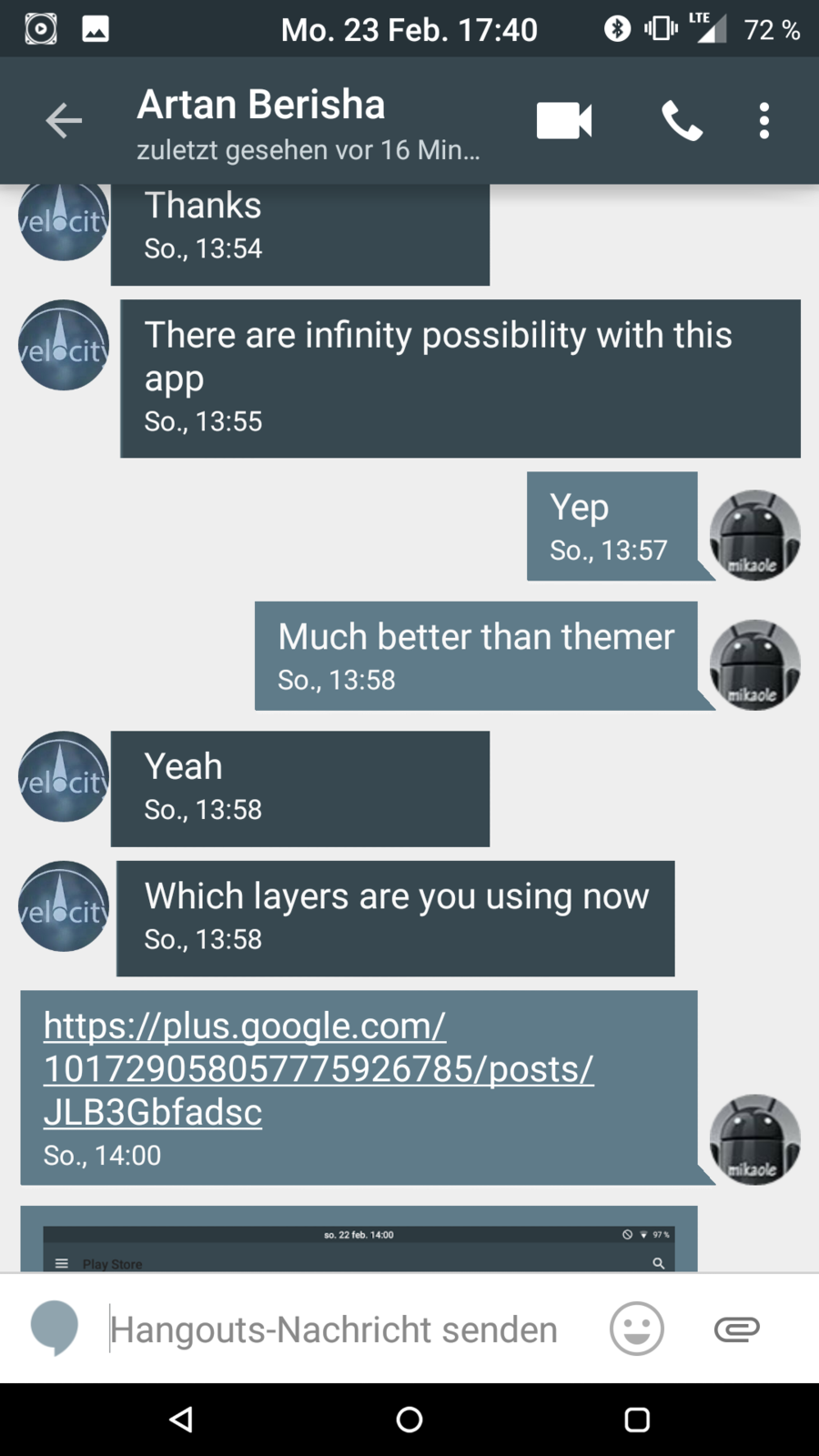 Also Hangout von PitchBlack is noch nich perfekt, wenn man tippt ist der Text im Eingabefeld dunkelgrau und bei schwarzem Hintergrund nur schwer lesbar