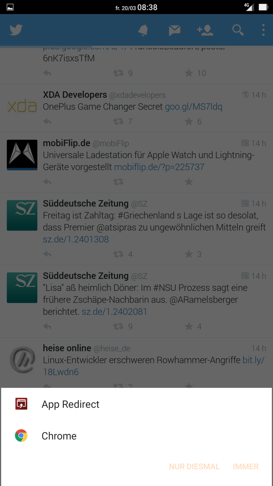 Ist es eigentlich ein Bug, das ich immer die Auswahlliste von unten hoch schieben muss, um auswählen zu können? Ihr wisst, was ich meine? Wenn ich zum Beispiel einen Link folge und ich gefragt werde, ob Chrome oder Opera...