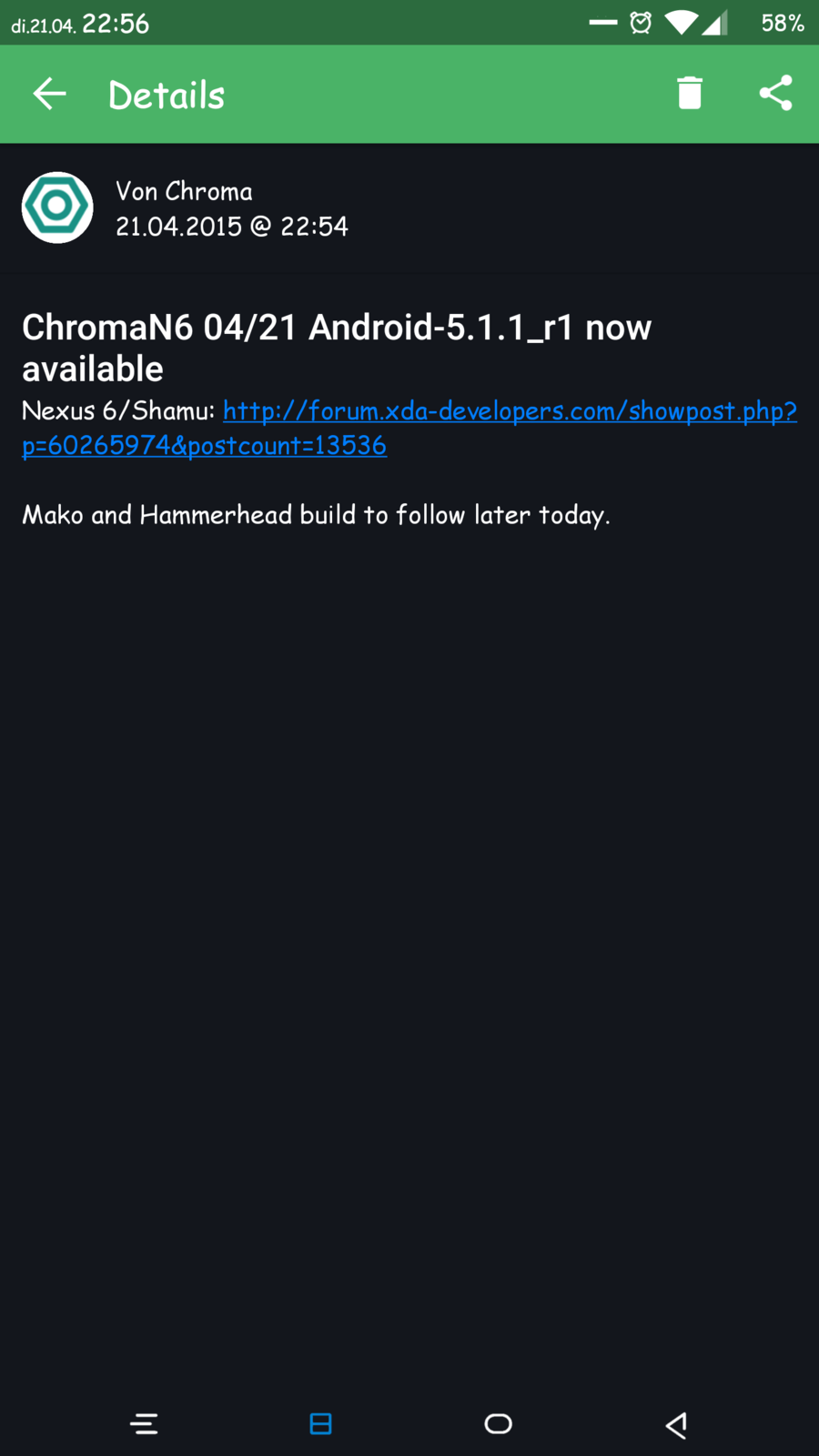 • Neus Chroma-Build auf brandaktueller neuer Android 5.1.1_r1-Basis:
