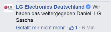Bin gerade eher zufällig in Kontakt mit LG per Facebook bezüglich dem verkümmerten Lollipop Lockscreen. Aber ich schätze da kommt in Korea nichts davon an. :jaded: