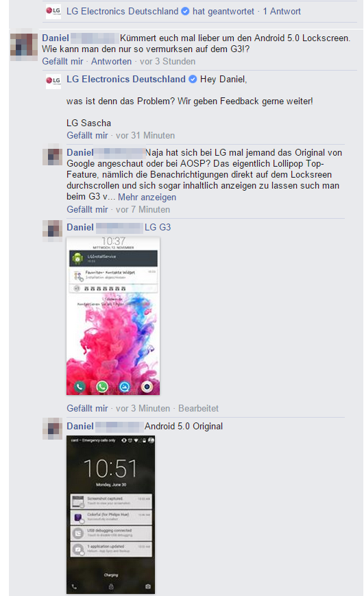 "Naja hat sich bei LG mal jemand das Original von Google angeschaut oder bei AOSP? Das eigentlich Lollipop Top-Feature, nämlich die Benachrichtigungen direkt auf dem Locksreen durchscrollen und sich sogar inhaltlich anzeigen zu lassen such man beim G3 vergebens. Stattdessen bekommt man eine verkümmerte Benachrichtigungsanzeige, die max. eine Nachricht anzeigen kann. Der untere Bildschirmteil wird garnicht genutzt und liegt völlig brach. Dann hätte man es besser weglassen sollen. Schade... aber da geht noch mehr LG. Bezweifel das mein Wunsch bis Korea durchdringt."
