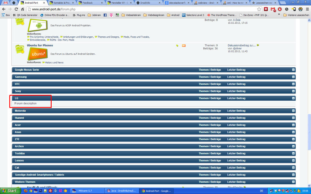 Bei der Forenübersicht bei LG ist etwas Text/Formatierung zuviel.