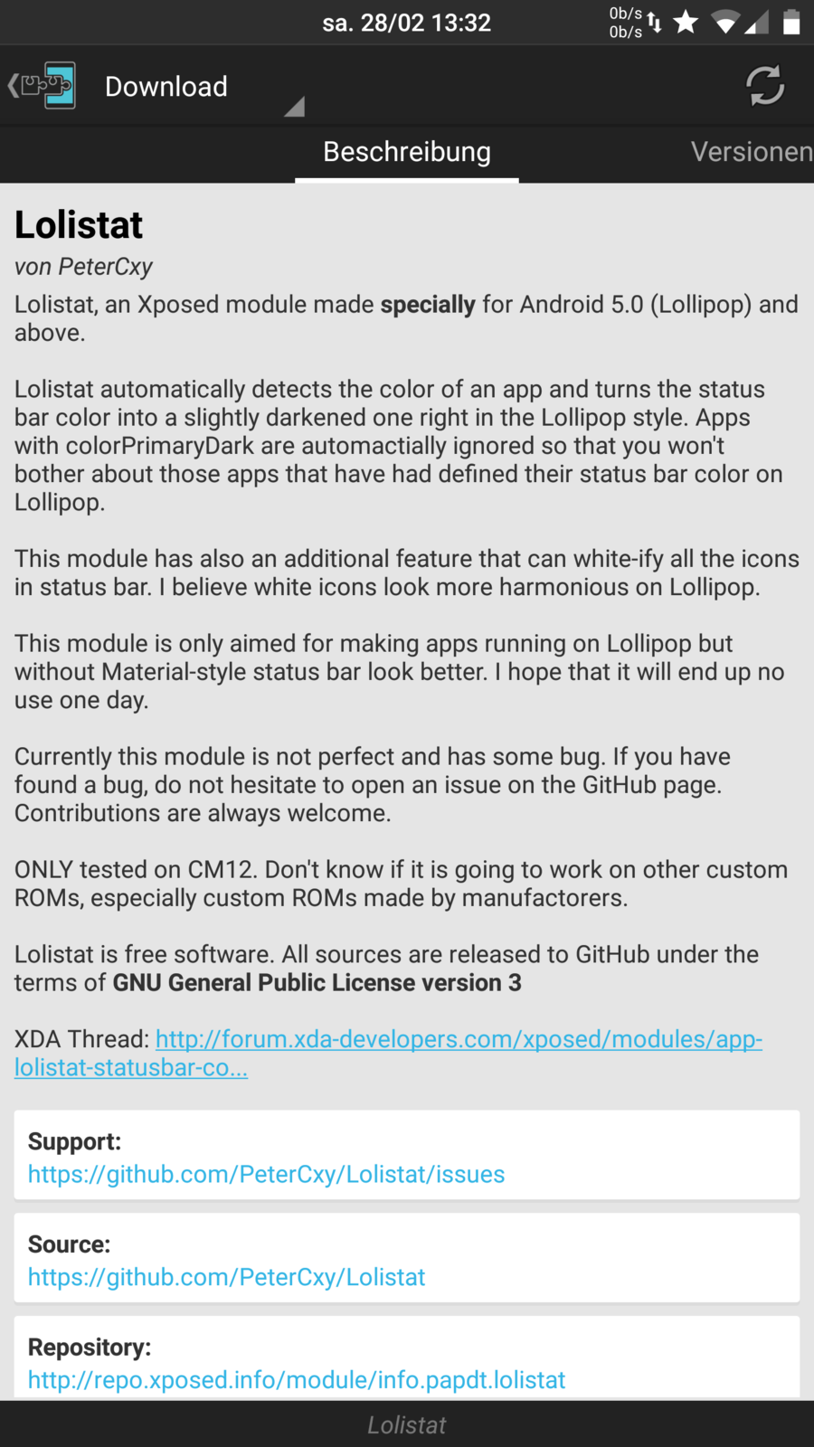 Ich habe bewusst keine Quelle eingefügt, da man die App, den Support und den Entwickler über xposed erreichen kann