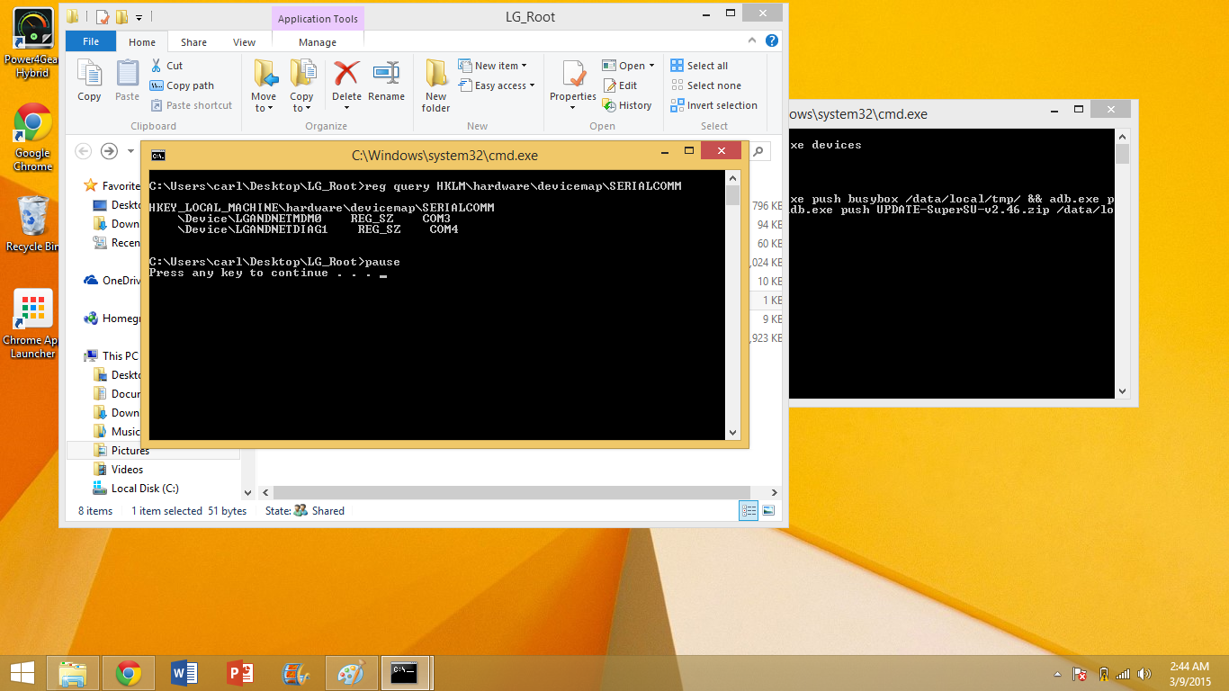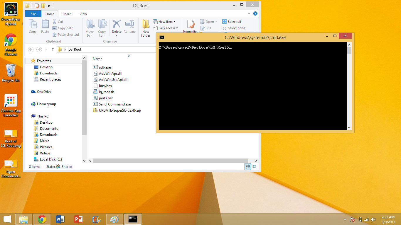 - starte im Hauptverzeichnis des entpackten LG_Root Ordners die Eingabeauffoderung/Kommandozeile (rechte Maustaste Eingabeaufforderung von hier)