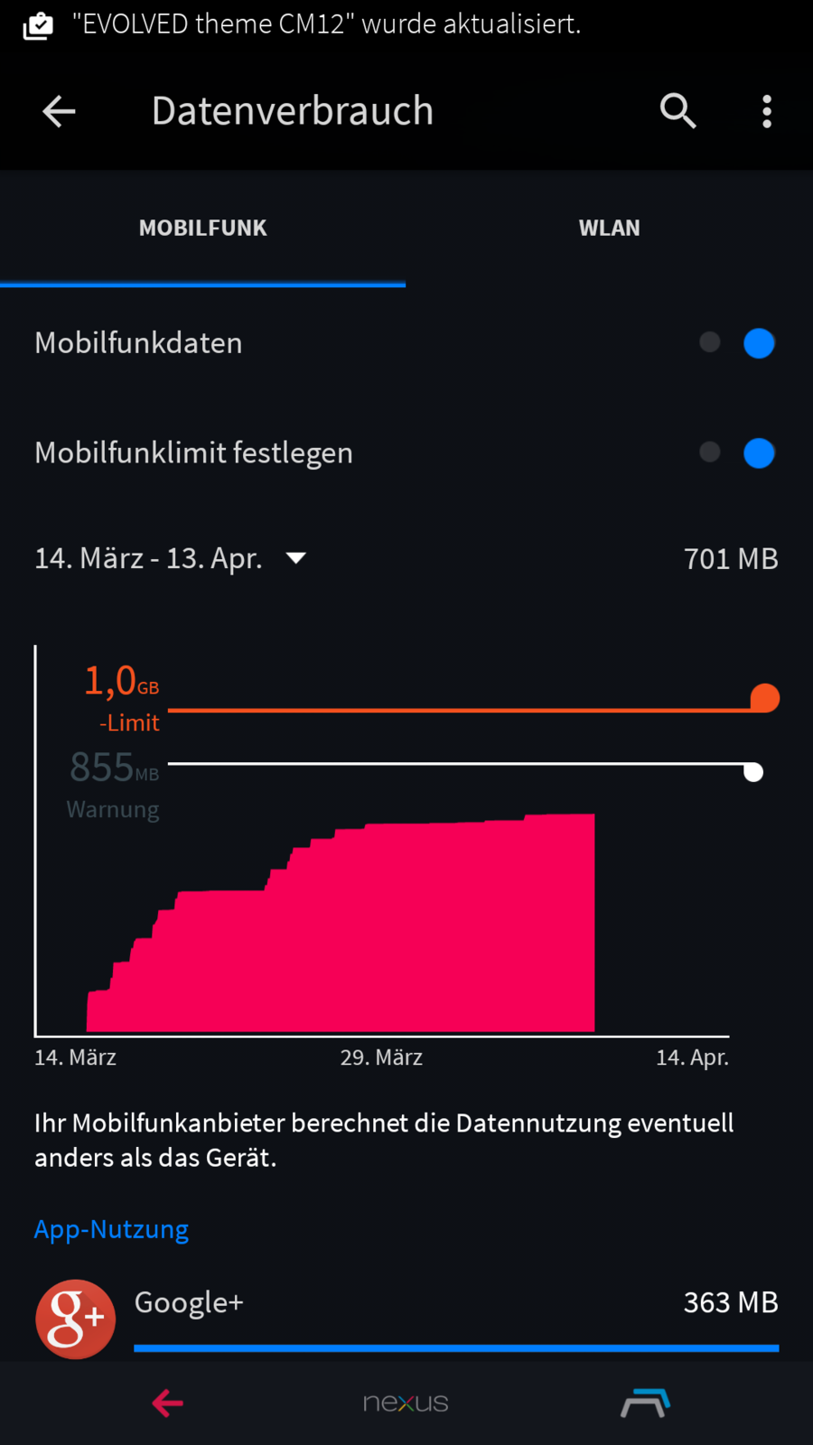 Habe das Coalfield Theme drauf auf meinem G3 mit CM 12,sieht super aus.