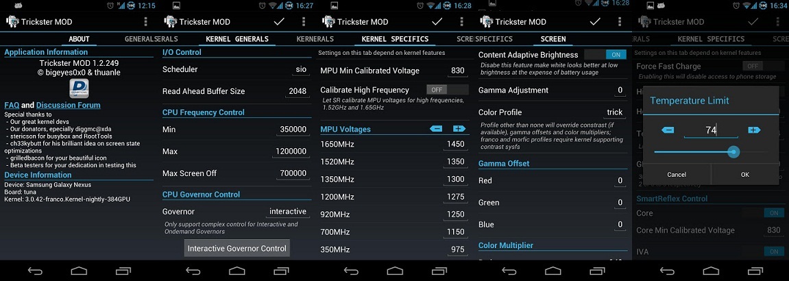 Trickster MOD app is a tweaking tool to change various settings included in your kernel and other mods to your phone.