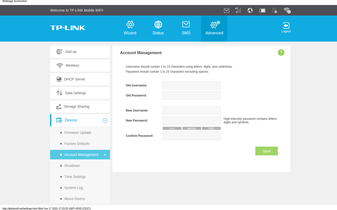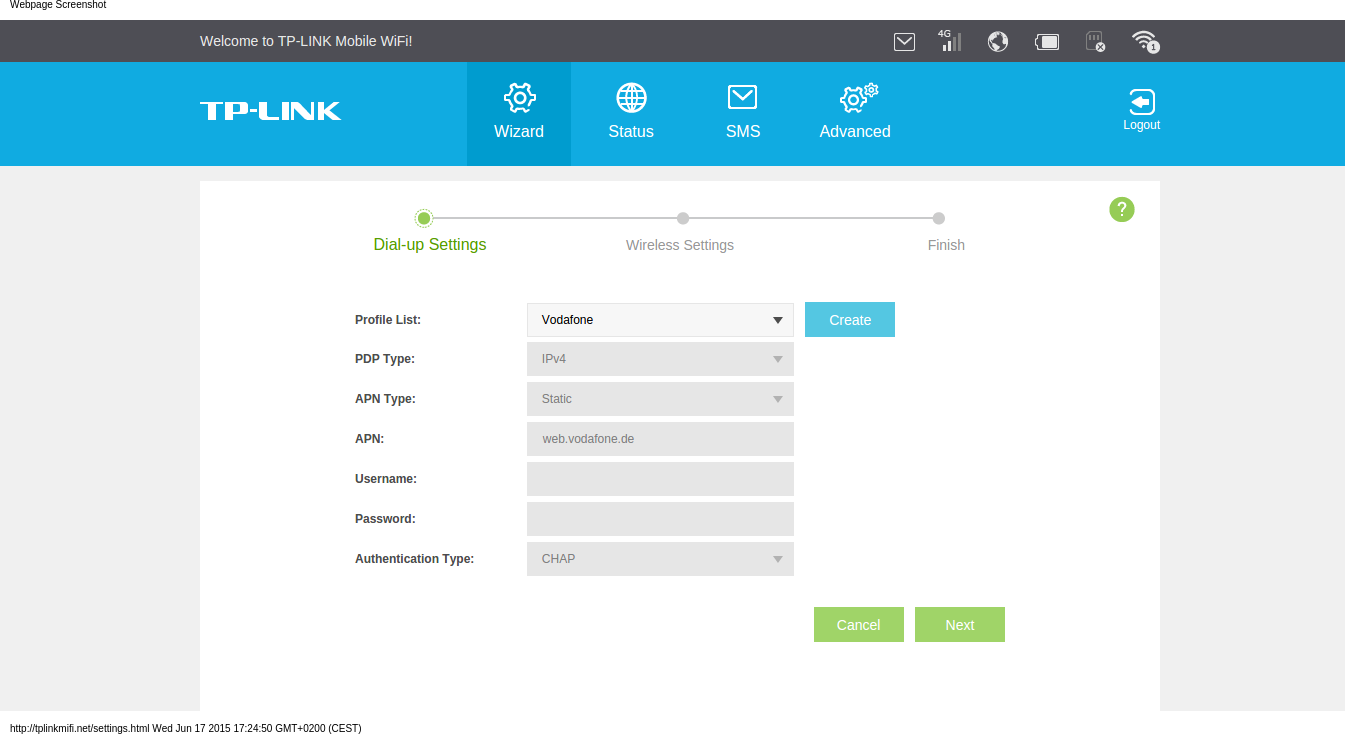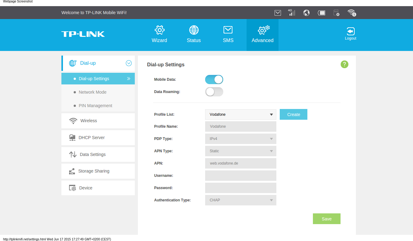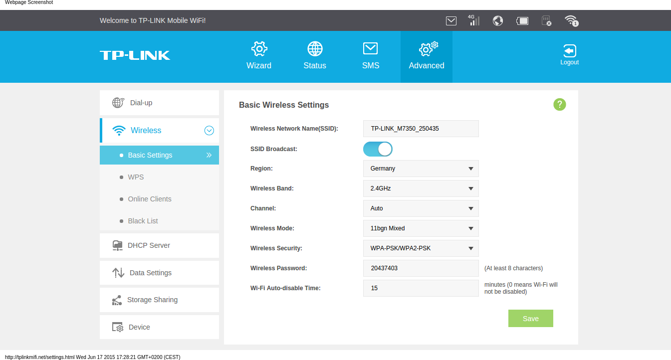 Das Gerät stellte sofort eine LTE Verbindung her. Auf einem kleinen Display werden Geräteinfos angezeigt. Man kann sich in dem Menü auch das WLAN-Passwort anzeigen lassen oder das WiFi Band von 2,4Ghz auf 5Ghz stellen. Es ist auch möglich Data Roaming ein und auszustellen . Es ist auch möglich den Netzwerkmodus von 4G auf 3G zu stellen,