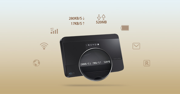 Das praktische TFT-Display bietet einen intuitiven Überblick über Betriebsdaten wie Batterieladezustand, Netzwerktyp (2G/3G/4G), Signalstärke und WLAN-Status. Mit der Menu-Taste können Sie den Netzwerktyp, das Frequenzband oder Roaming ganz schnell umschalten sowie WLAN-Namen und -Passwort anzeigen lassen — direkt am Gerät, ohne sich in die Weboberfläche einloggen zu müssen.