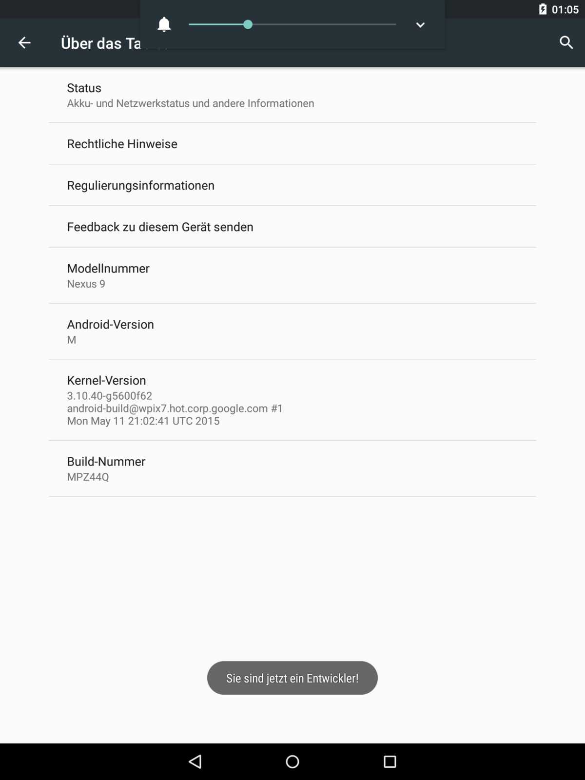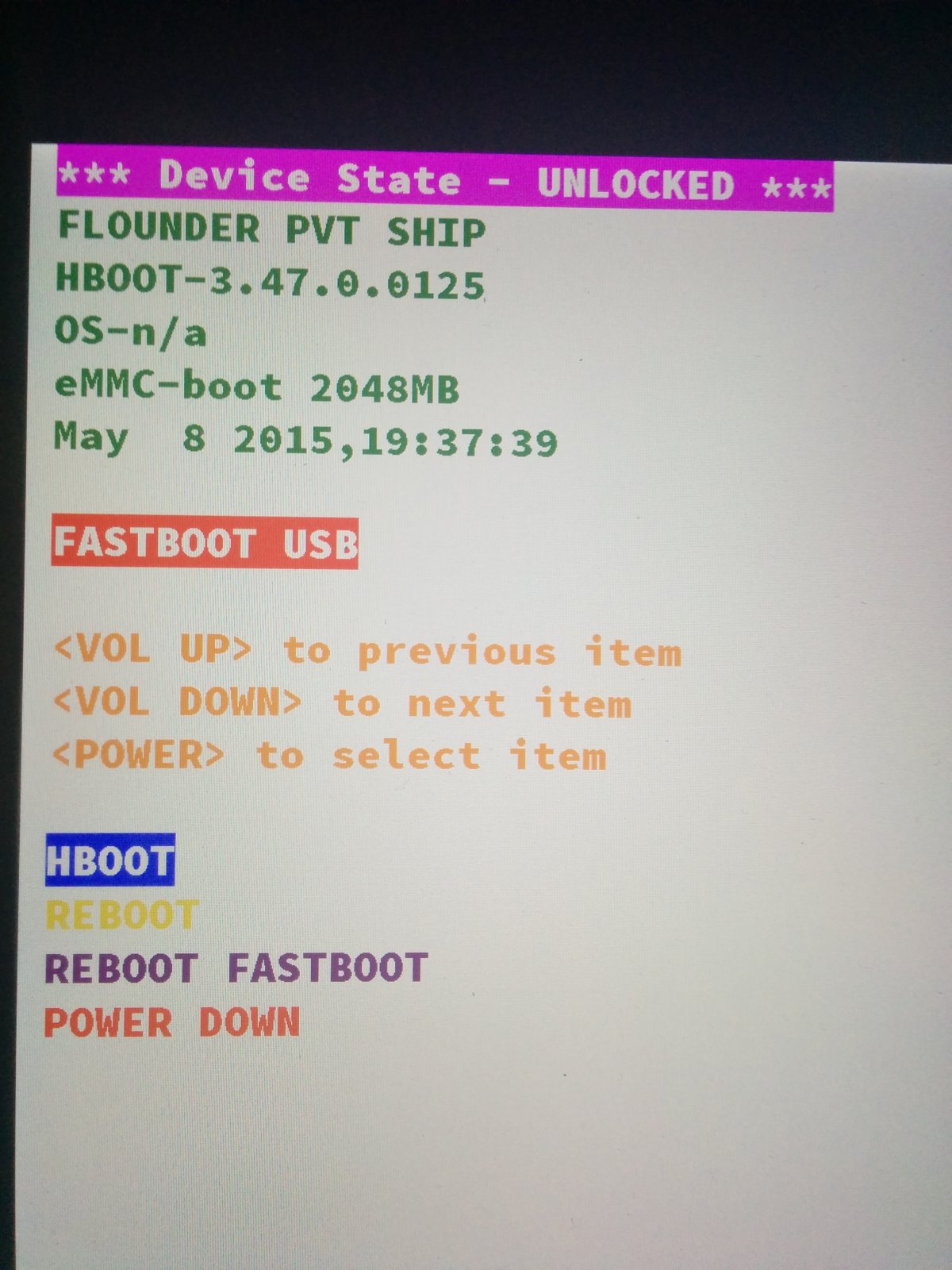 - Boot your Nexus 9 into fastboot (Shutdown device; Hold Vol-UP + Power on)