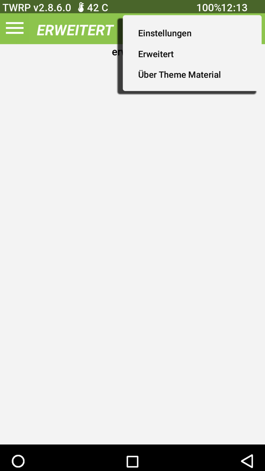 - Dreipunktmenü (Einstellungen, Erweitert, Über Theme Material) oben rechts hinzugefügt