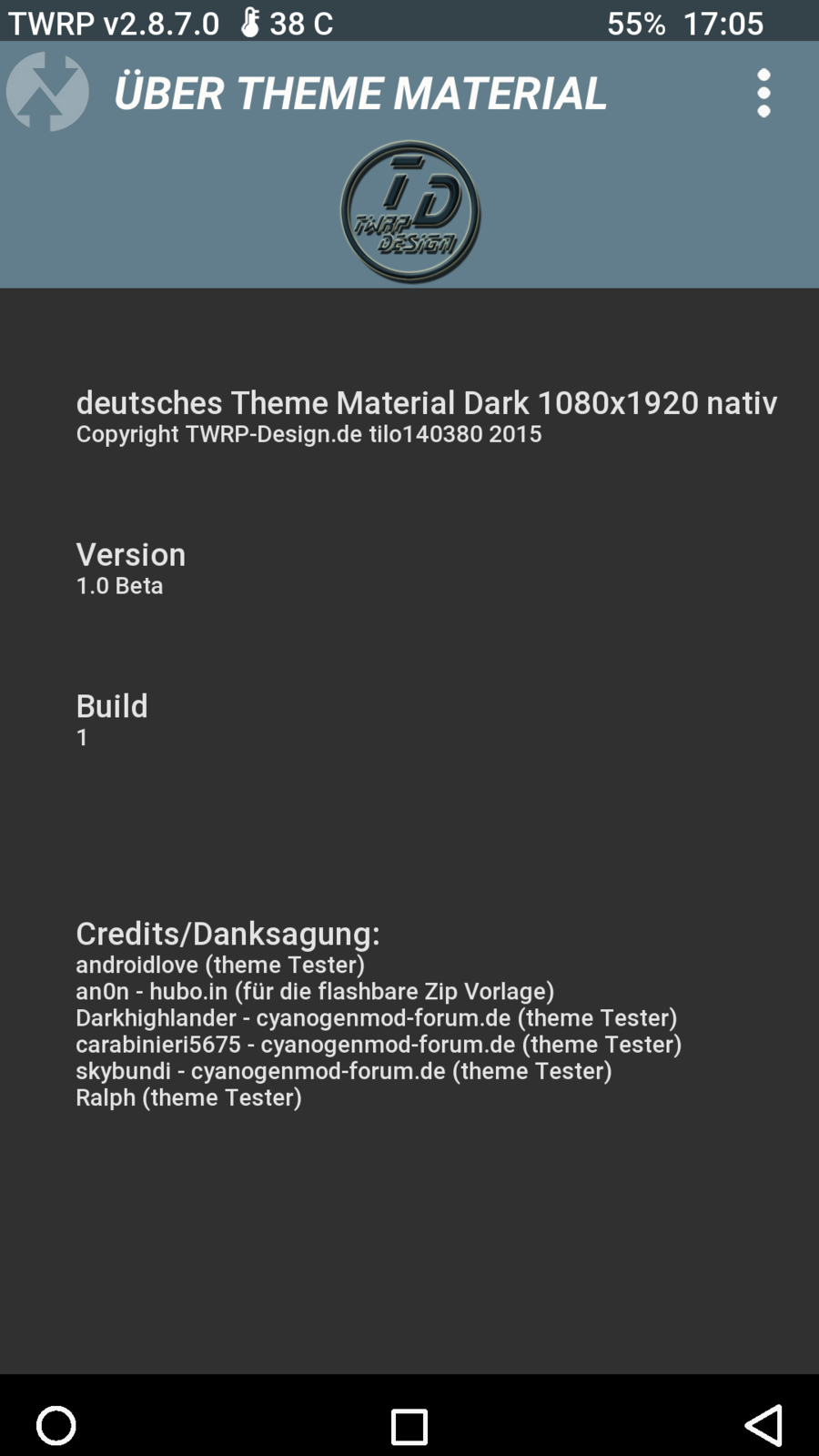 Das Theme ist ab TWRP 2.8.6.0 und hat eine native Auflösung von 1080x1920. Ab TWRP 2.8.6.0 werden Themes hoch bzw runter skaliert, wenn das Theme eine andere Auflösung als das eingesetze Gerät haben sollte. Daher ist das Theme z.B auch auf 720x1280 lauffähig.