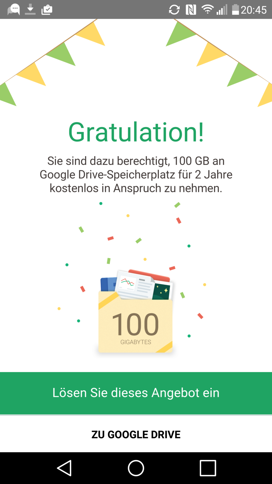 • Wer ein LG G4 erworben hat, bekommt bei Anmeldung in der Google Drive App 100GB für 2 Jahre geschenkt!