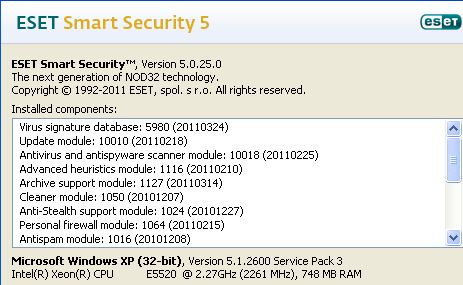 Allerdings wird es weiter so bleiben, dass ESET den Anwendern eine "Zwangsinstallation" erspart, indem diese neue Programmversion nicht automatisch geladen wird und die Module, die die eigentliche Funktion des Programms beinhalten, weiter per Signaturupdate, wie bisher auch, regelmäßig aktualisiert werden (zu sehen bei "Hilfe > Über").