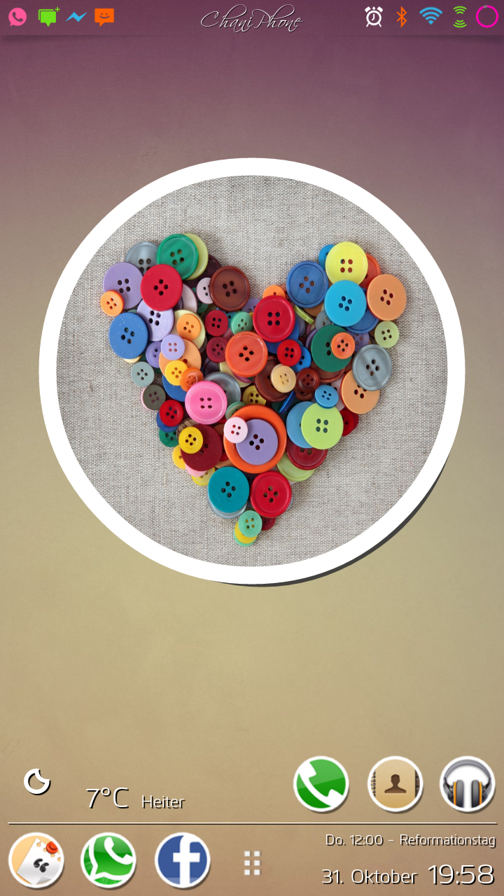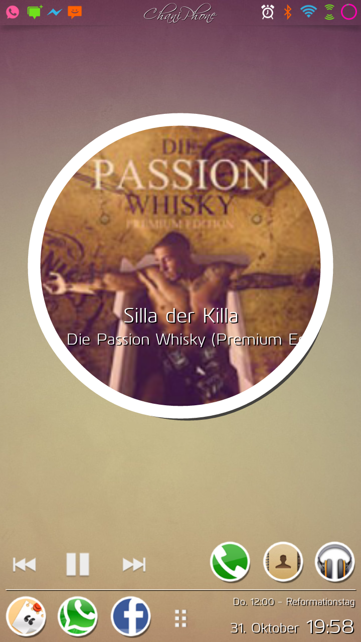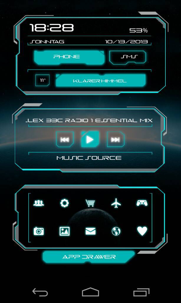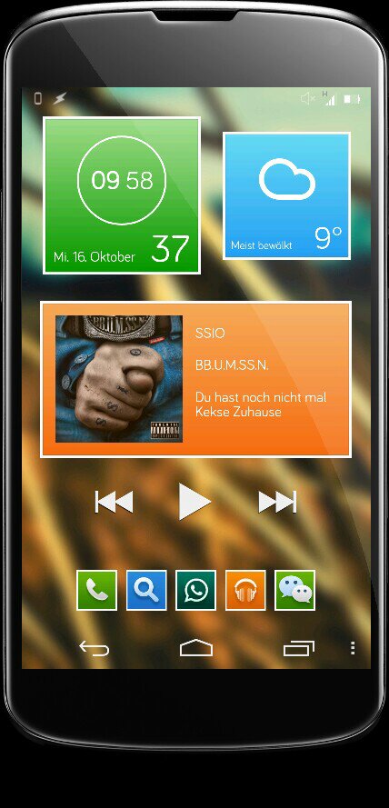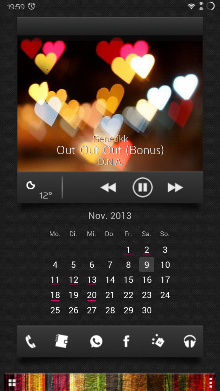 Die Icons in der Statusbar gehen nur bei Event an, sind jetzt nur zum Zeigen eingeblendet. Mit Klick auch das Playicon rechts wechselt das Bild im Kreis zum Player und die Wettervorhersage wird durch die Musiksteuerung getauscht.