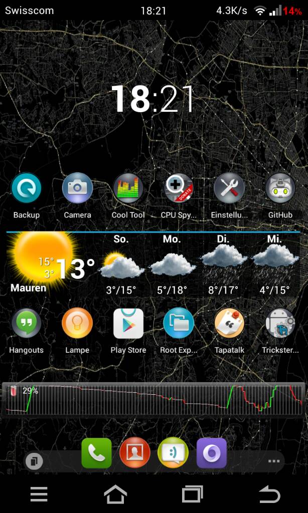 Genug von Zooper-Hightech-Screens, mit Fortschrittsleisten für Sonnenaufgang und -untergang. Nach einigen übersteuerten Screens bin ich es erstmal satt und genieße es oldschool und "simpel". Bastel gerade nur so ein bissl rum, und genieße die Abwechslung zur derzeitigen Mode - bis es dann in einer Woche wieder zu den "Hightechs" geht. *g*