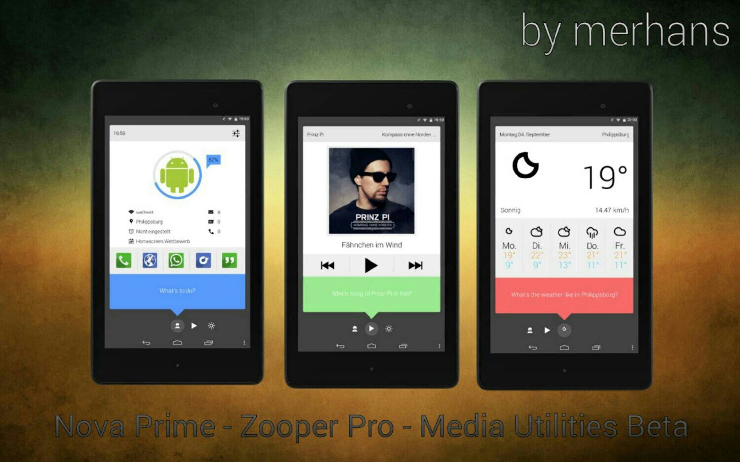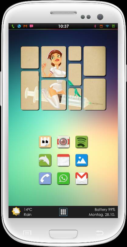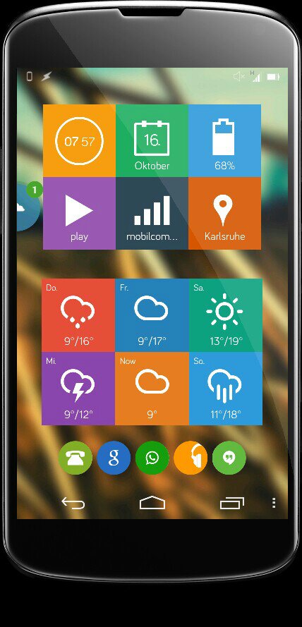Vorlage ist diese von MyColorscreen, Icons sind Tinywith von Sammycakes. Umsetzung ist komplett Zooper auf Nova, Kalender ist "my Month Calender"