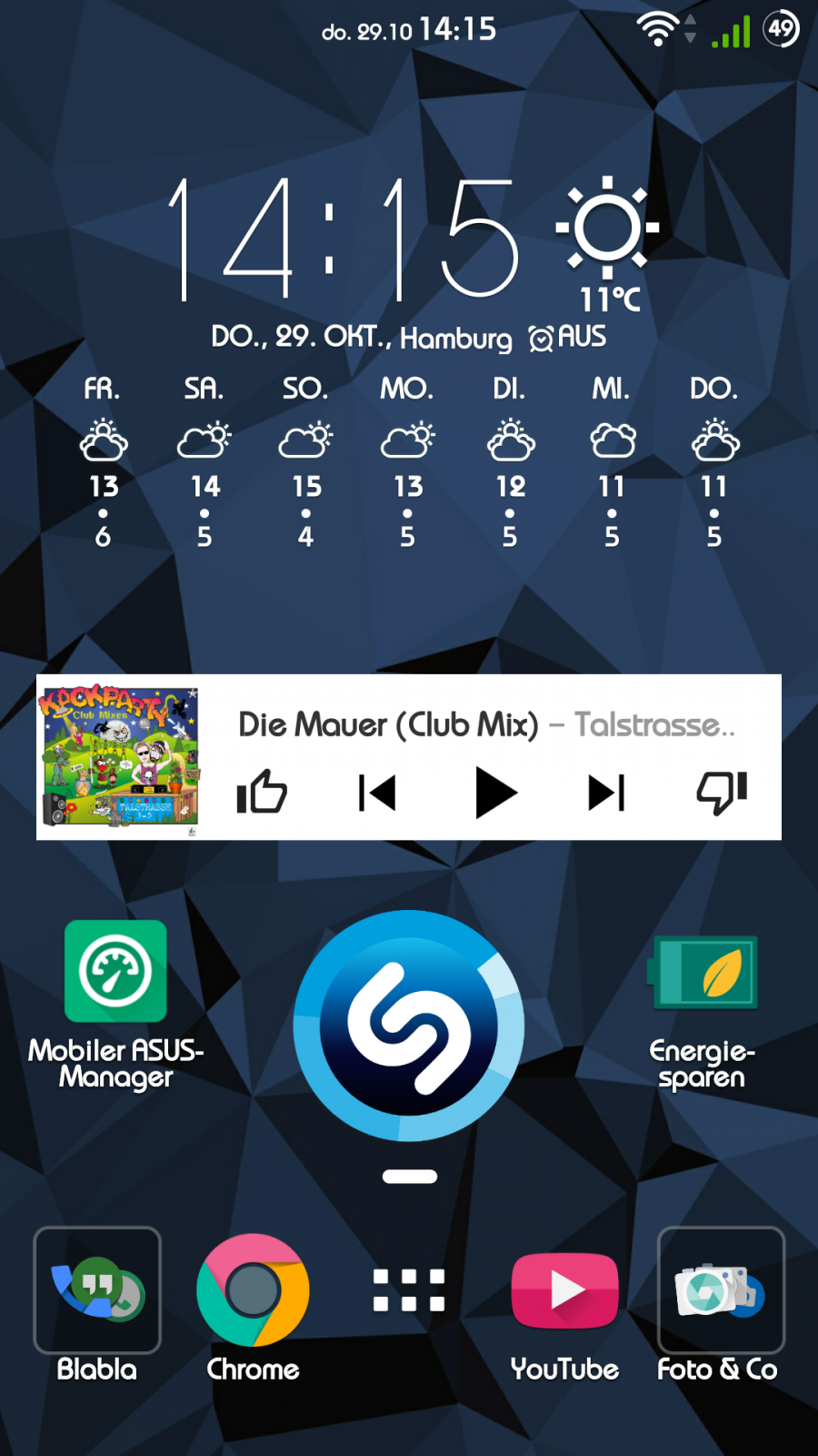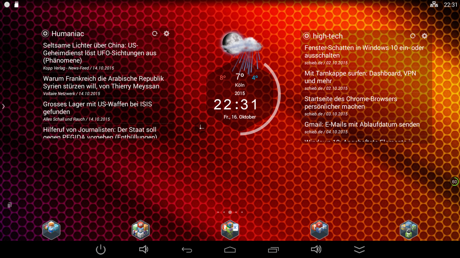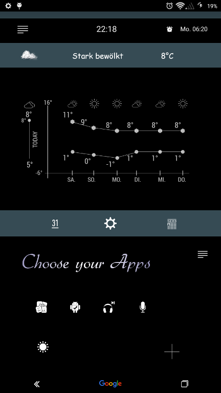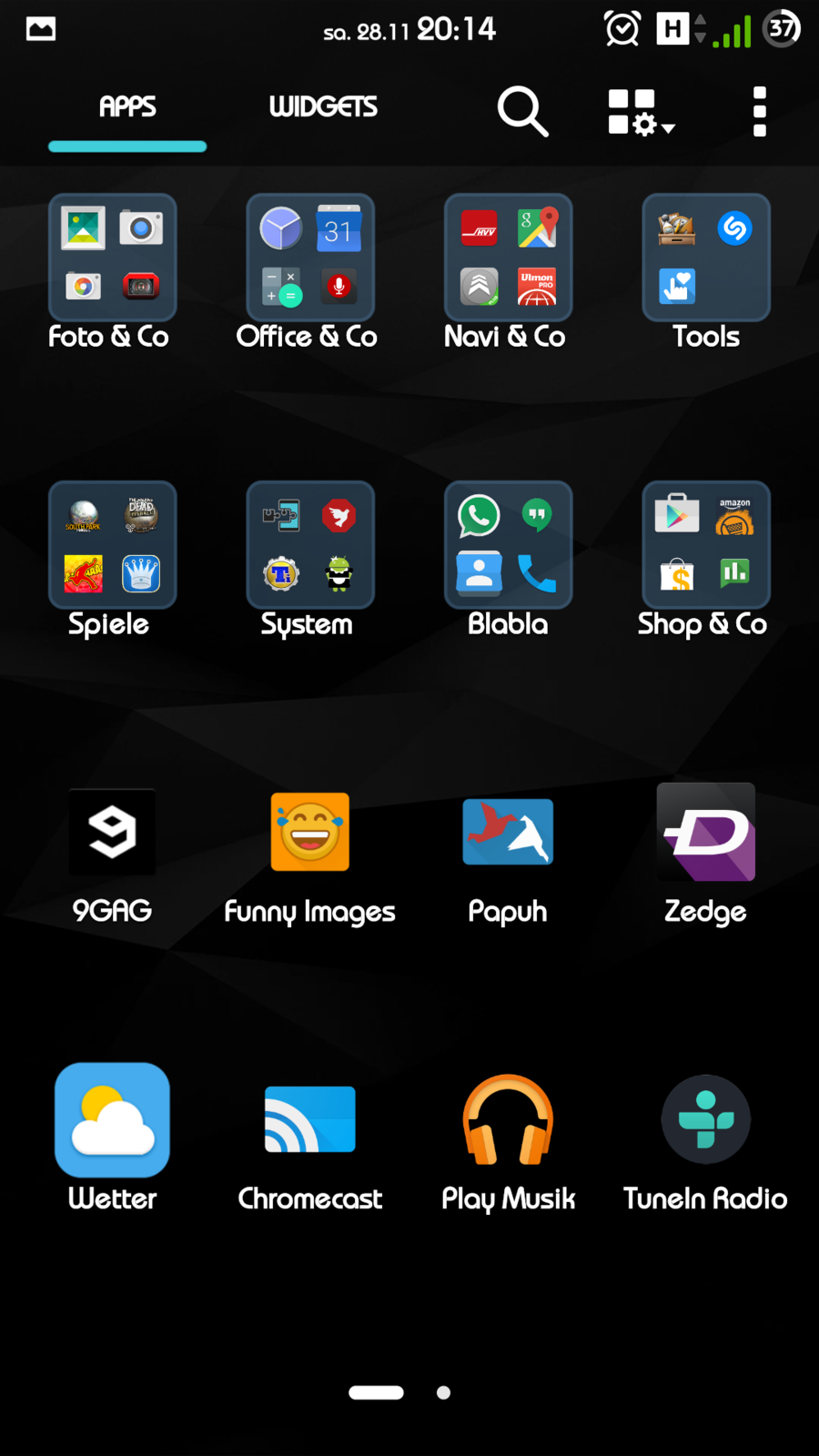 Mein Homescreen wechselt schon mal farblich und thematisch aber wird die letzten Jahre immer mit dem von mir geschätzten TSF Shell Launcher betrieben. Hält sich wacker im laufenden Betrieb und frißt auch nicht allzu viel an Kapazitäten weg, wie manch anderer.