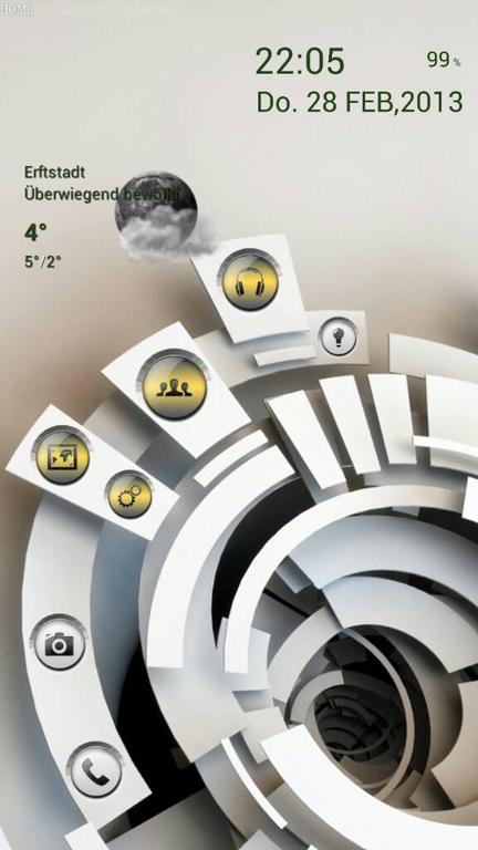Ein Homescreen. Mag es schlicht. Uccw ist einfach ne Geile app. Möchte nicht mehr darauf verzichten.